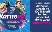 İstanbul Anadolu yakasında ikamet edenler için ize Emaar AVM’nin kaçırılmayacak Karneval Etkinliği kapsamında Sömestir tatilinde Emaar Akvaryum, Fun Lab ve sinema biletinden oluşan eğlence paketi çok avantajlı. 39 TL değerindeki akvaryum çocuk bileti, 20 TL değerindeki sinema bileti ve 100 TL değerindeki FunLab biletinden oluşan Sömestir Eğlence Paketi 20 Ocak-4 Şubat tarihleri arasında 159 TL yerine sadece 99 TL. Sömestir eğlence paketini Emaar Akvaryum & Sualtı Hayvanat Bahçesi gişesinden hemen alın. L3 katında gerçekleşecek olan Hayalgücü Stüdyoları etkinliğine ise katılım ücretsizmiş.