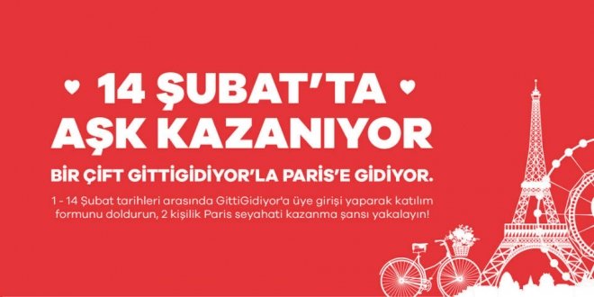 He şeyin en güzeli Gittigidiyor’da Aşkın da en güzeli Gittigidiyor’da sizleri bekliyor.14 Şubatta Aşk kazanıyor. 1-14 Şubat tarihleri arasında Gittigidiyor’a üye girişi yaparak katılım formunu doldurun. 2 kişilik Paris seyahati kazanma şansını yakalayın. Gittigidiyor’la Bir Çift Paris’e Gidiyor bu çift neden siz olmayasınız ve aşkın mrkezi romantizmin kalbi Paris’aşk dolu bir 14 Şubat geçirmeye ne dersiniz?