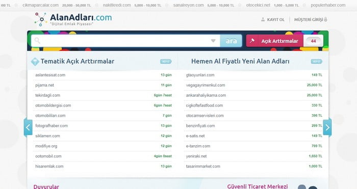 Türkçe alan adı genç girişimcilerden büyük holdinglere kadar herkesin bütçesine uygun seçeneklere sahip, satın alınabilir durumda 63.00 alan adı bulundurmaktadır.