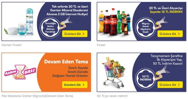 Türkiye’nin ilk sanal market uygulamasına sahip olan ve müşterilerine evlerinin rahatlığında kapıda teslim seçeneği sunan Migros, indirim kuponu arayışının en yoğun olduğu markalardan biridir. Yenilikçi yapısı, zengin ürün çeşitliliği ve kurumsal yapısı alışveriş için Migros’u tercih edenlerin sayısını giderek arttırmaktadır. Market alışverişlerinin hem hızlı hem de güvenli bir şekilde yapılmasını sağlayan Migros.com.tr adresinden yapılacak alışverişlerde geçerli Migros kupon ve Migros indirim kodu kârlılığını arttırmak isteyen tüketicilere büyük bir fırsat sunmaktadır.
